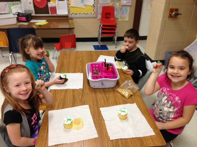 The Friendly Frogs and Busy Bees were surprised when they came back from recess to find that a leprechaun had been in the room.He left little green leprechauns and gave us new seats!