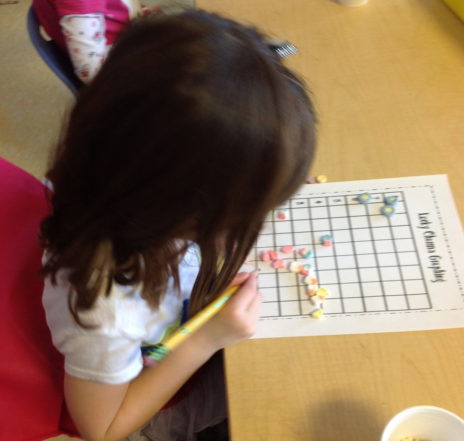 We missed Larry AGAIN! :) He stopped by while we were at lunch and left us a box of Lucky Charms and graphing sheets. We sorted, counted, and graphed our lucky charms.